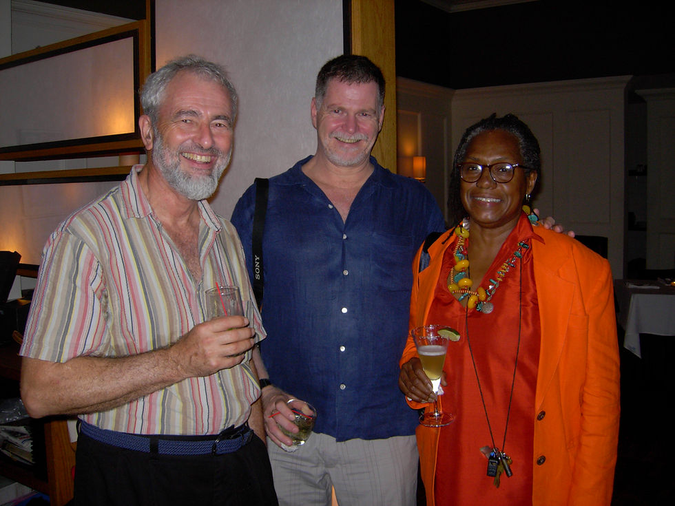 In 2008 I turned 60 (still turning!) and threw myself a party at a local pub. In this photo party guests are enjoying themselves...and their drinks! From left to right: Willyum Rowe, Ken, and Janet Henry.